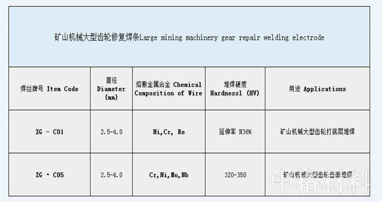 礦山機(jī)械大型齒輪修復(fù)焊條
